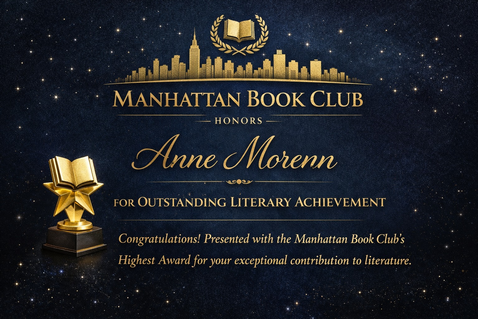 Manhattan Book Club's Highest Award for exceptional contribution to literature.